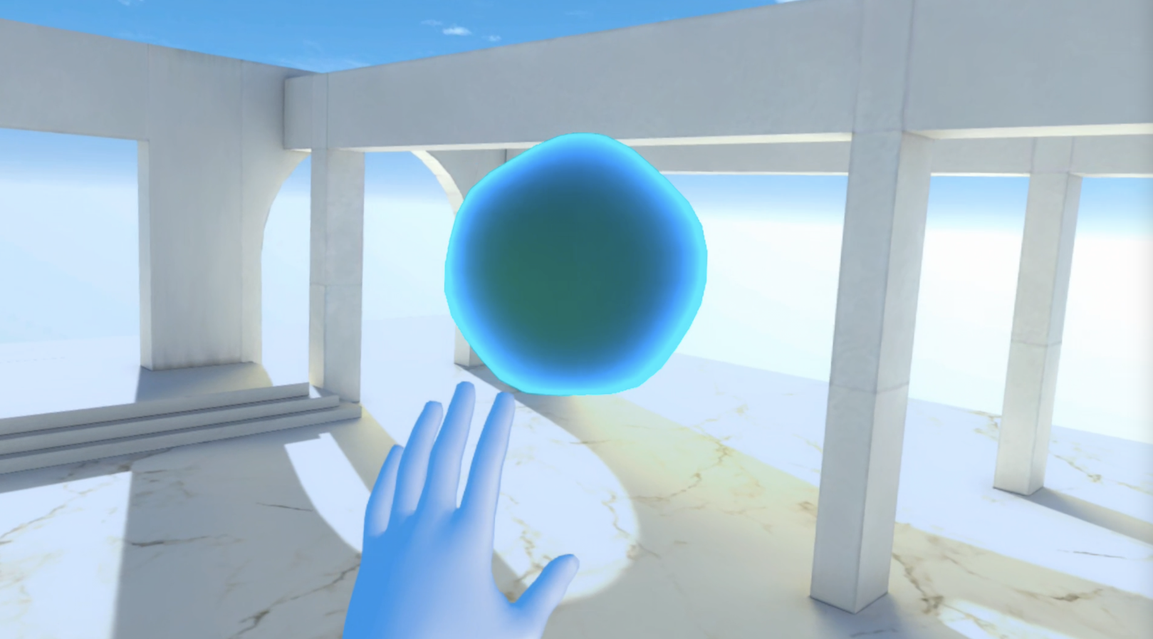 The experience involves travelling through a virtual gallery where the avatar of Stephen guides the viewer through a series of rooms, each with an immersive art experience.
